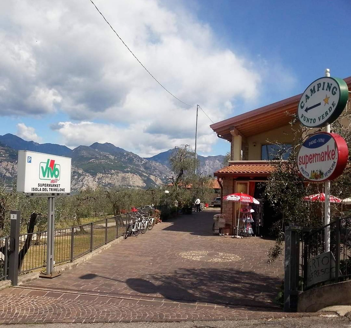 Transit Camping Punto Verde. Unser Campingplatz ist ganzjährig geöffnet, kann maximal 20 Fahrzeuge aufnehmen. Zugang vom Eingang des Supermarkets. Der Stellplatz ist mit Duschen, sanitären Anlagen sowie Ver- und Entsorgungsanlagen für Wasser ausgestattet. Toilette und Dusche mit heißem Wasser, Stromanschluss durch Abstandshalter, gratis Wi-Fi, Münz-Waschmaschine, Fahrradverleih, Austauschservice von GPL Flaschen. Die Zufahrt ist gepflastert und beleuchtet. Zugang zum See leicht erreichbar durch zwei Unterführungen.